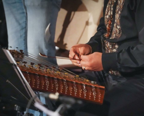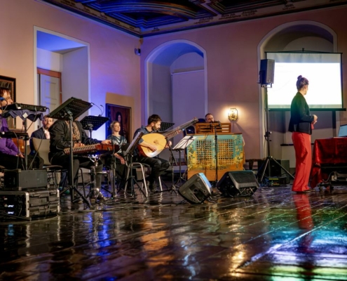 Was bereits die Probe versprach, hielt am Abend das Festkonzert „Mikrokosmos“ im Festsaal auf Schloss Moritzburg. Gregor Meyer, artist in residence des Musikfestes, hatte ein multidisziplinäres wie interkulturelles Ensemble aus exzellenten SolistInnen zusammengestellt. Einen Konzertabend mit Einblicken in moderne Quantenphysik und die Musik von Heinrich Schütz verbinden, dafür braucht es neben der konzeptionellen Idee vor allem professionelle Arbeit. So etwas war in Zeitz noch nicht zu hören.
